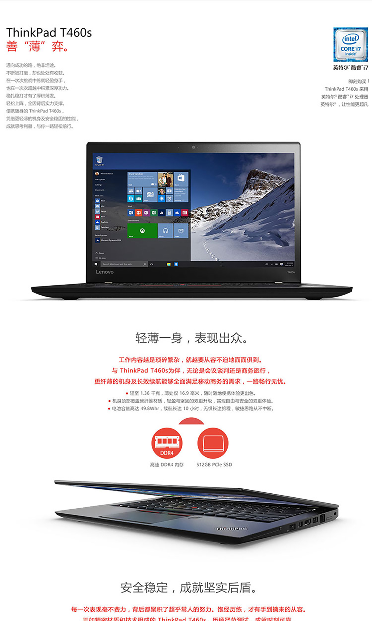 联想/Lenovo ThinkPad T470s 轻薄便携商务电脑